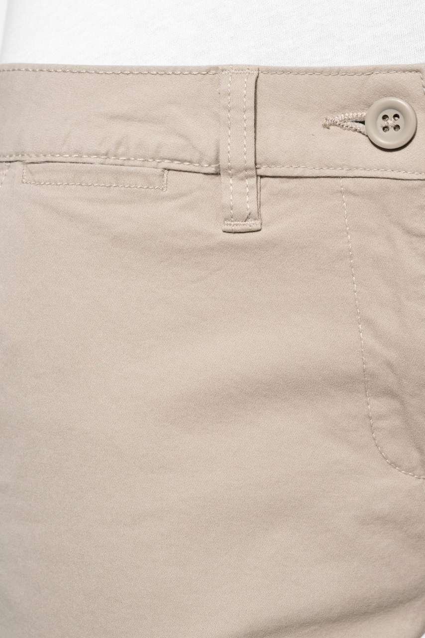 Praktické dámské šortky bermudy z enzymem prané tkaniny pro optimální pohodlí. Šortky mají dvě boční a dvě zadní kapsy. Zapínání na zip a knoflík. V pase jsou poutka na opasek. Šortky jsou moderního střihu vhodné pro různé volnočasové aktivity. Tento výrobek byl speciálně ošetřen a úmyslně vypadá opotřebovaně.U tohoto výrobního procesu mohou vznikat mezi výrobky odchylky v barvě, díky čemuž je každý kus jedinečný.