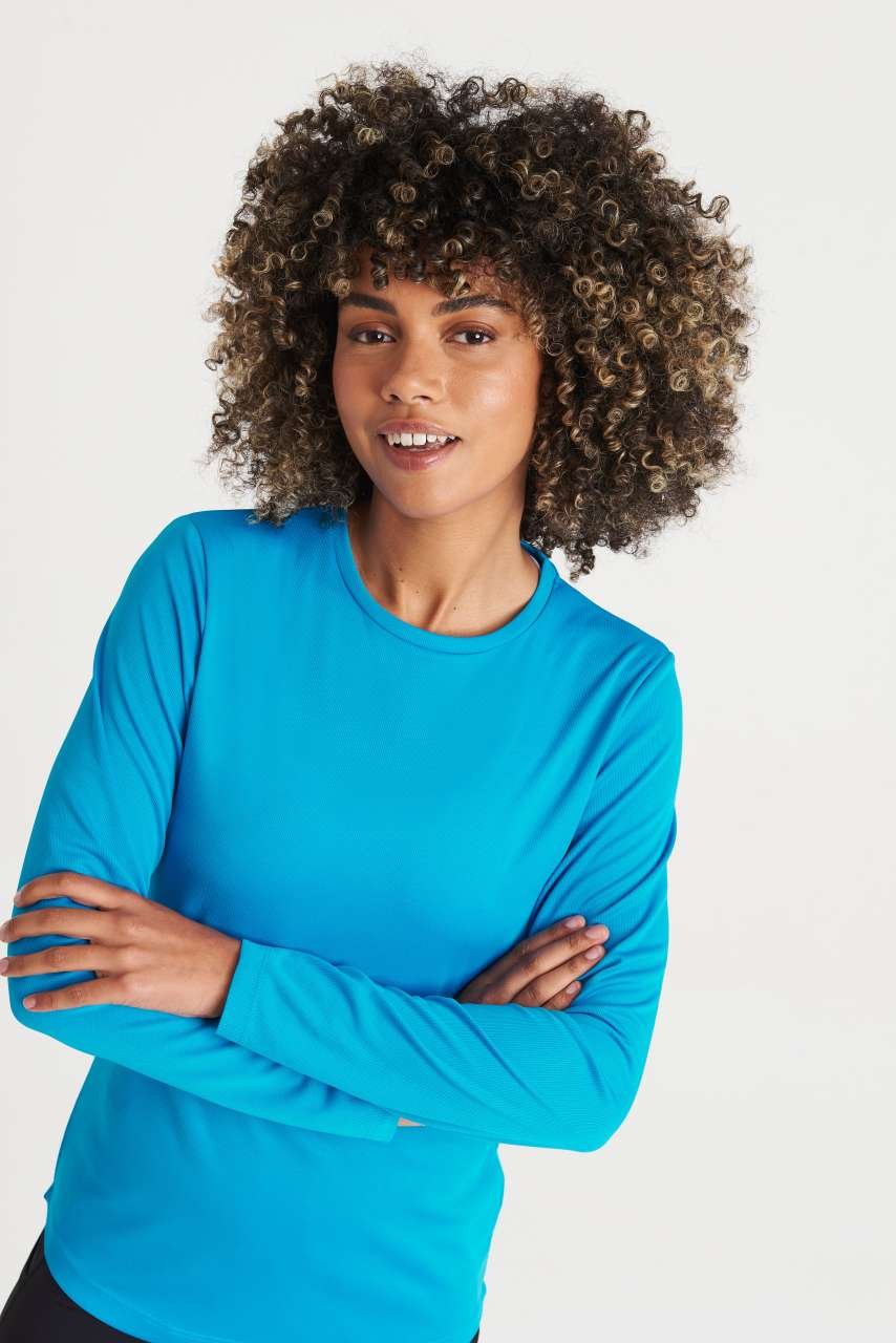 Lehké dámské tričko s dlouhým rukávem z prodyšné, rychleschnoucí tkaniny odvádí pot a chrání UPF 30+. Volnější střih, vsazené rukávy, podlepený šev za krkem a dvojité šití drží tvar. Trhací štítek pro snadný rebranding. Ideální pro sítotisk, transfer i sublimaci. Přidejte do košíku!