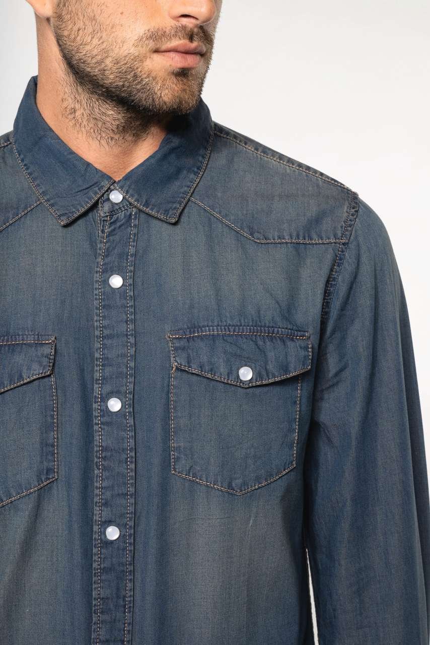 Pánská bavlněná košile padnoucího střihu je ideální pro denní nošení, ale i jako pracovní oděv. Enzymy opraná košile má přední a zadní výztuhy, tvarovaný lem. Košile má dvě náprsní kapsy a pohodlné zapínání zajistí patentky po její délce, kapsách i manžetách.