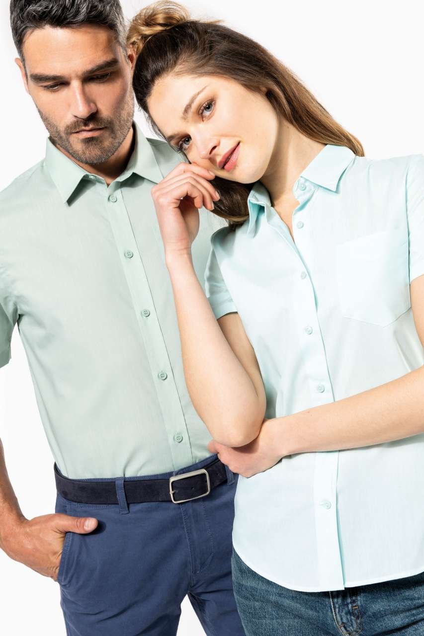 Pánská košile s krátkým rukávem vyrobena z popelínové směsi, která spojuje odolnost, snadnou údržbu a komfort nošení vhodný pro teplejší období a každodenní použití. Materiál s gramáží 110 g/m² je upraven jako easy-care, což usnadňuje údržbu a pomáhá zachovat upravený vzhled i při častém praní.