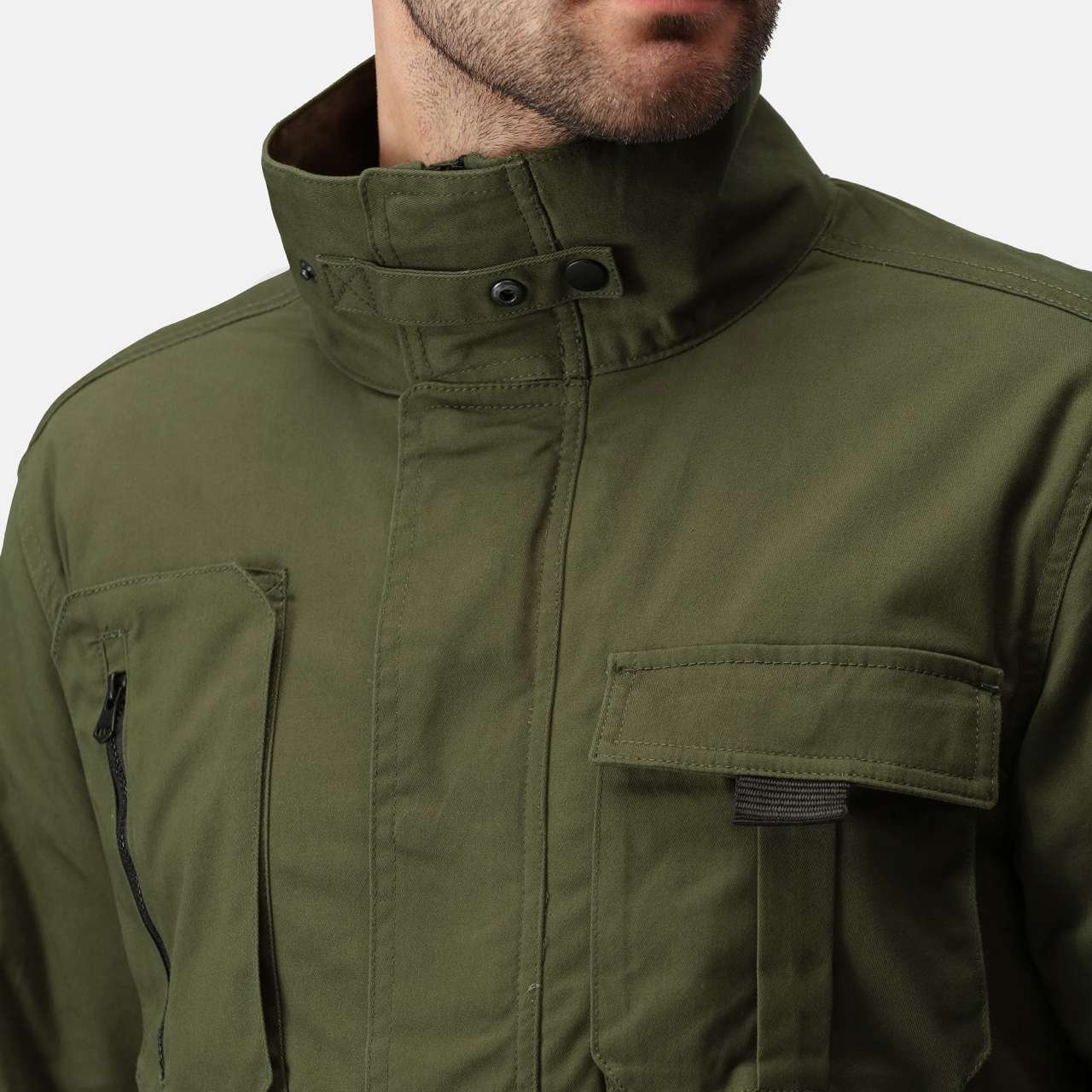 Bunda Pro Utility Jacket je praktický model navržený pro všestranné využití ve firemních, pracovních i promo kolekcích. V horní části je využit twillový materiál Coolweave (97 % organická bavlna, 3 % elastan, cca 200 g/m²), který kombinuje příjemný pocit s mírnou pružností a odolností vůči běžnému opotřebení. Podšívka je kombinací síťoviny a polyesterového popelínu, což zvyšuje komfort nošení.