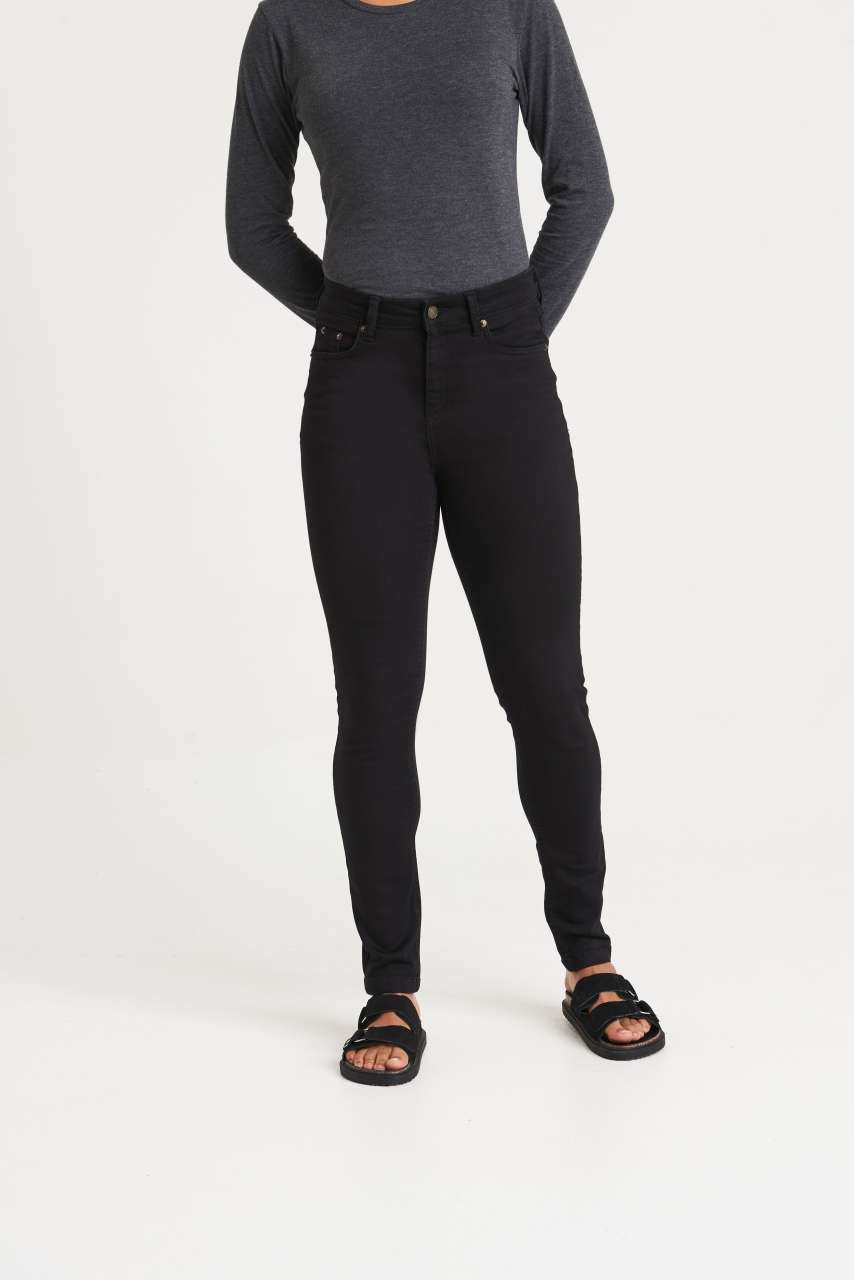 Úzký střih džínů krásně zvýrazní vaši postavu. Jsou vyrobeny ze strečového denimu, takže vás perfektně obepnou. Mají kapsy vpředu i vzadu a zapínají se na knoflík a zip.